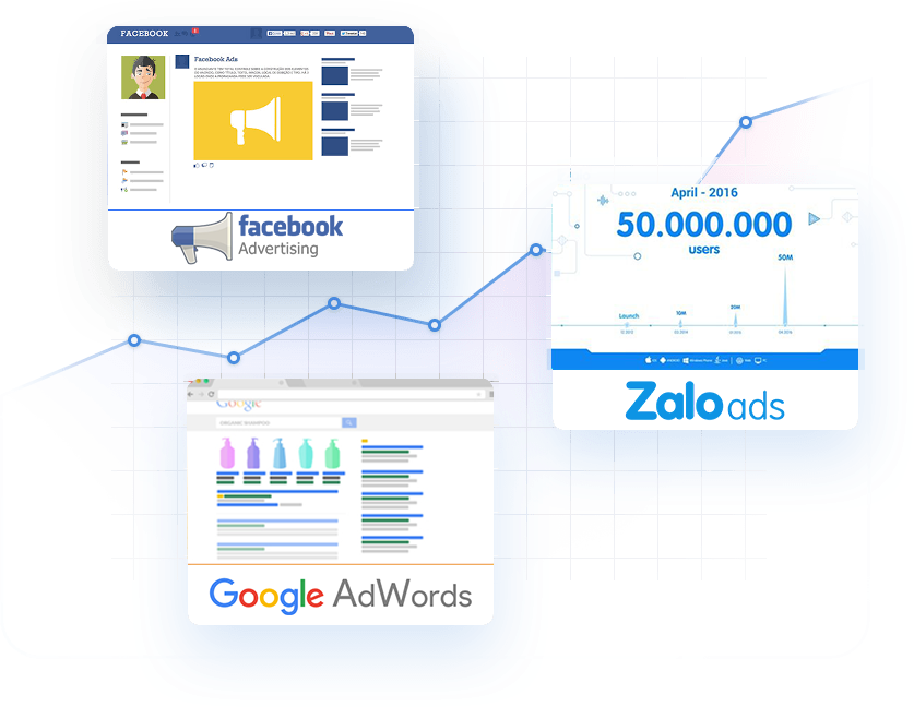 Chúng tôi giúp bạn thiết lập hệ thống Online Marketing chuyên nghiệp để tiếp cận khách hàng tiềm năng ở mọi kênh truyền thông.